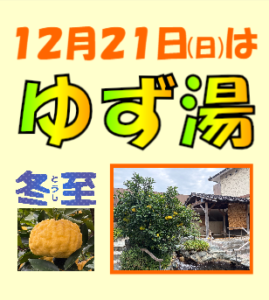 12月21日(日)は「柚子湯」 2025.12.06 行田天然温泉 古代蓮物語です。 12月21日(日)は、古代蓮物語の名物でもある「鬼柚子」を浮かべた『柚子湯』を開催します。 本来は冬至である22日(月)なのですが、たくさんのお客様に楽しんで頂きたく、 21日の日曜日に変更いたしました(^^♪ 皆様のご来館を心よりお待ちしております(^^♪